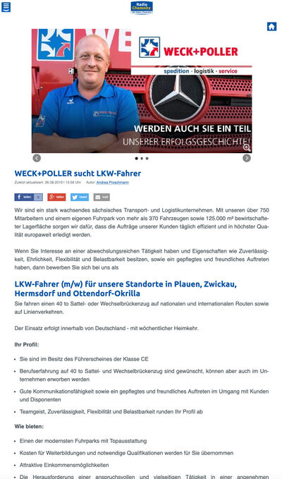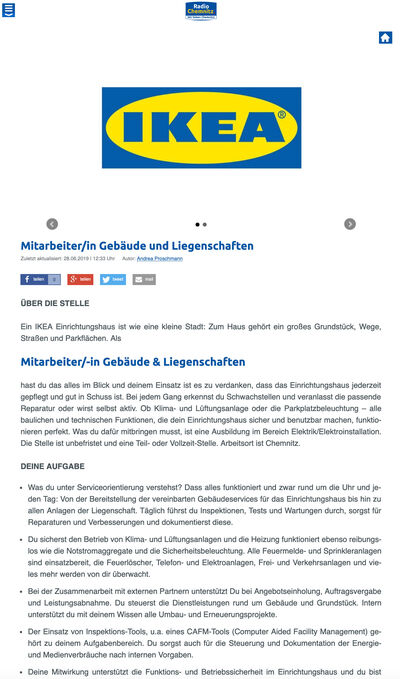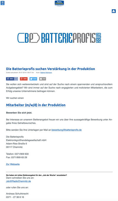 - Anzeige in der Stellenbörse auf der Senderhomepage